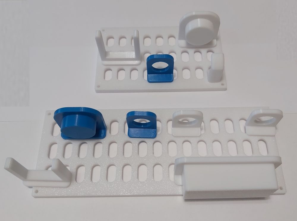 Szögletes tálka rácsos panelhez – praktikus, 3D nyomtatott kivehető tároló megoldás Fanni falhoz és kompatibilis rácsos panelekhez.