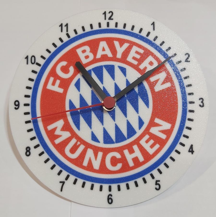Az egyedi FC Bayern München mintás, 175 mm-es falióra esztétikus, 3D nyomtatott falióra modern megjelenéssel és cserélhető óraszerkezettel.