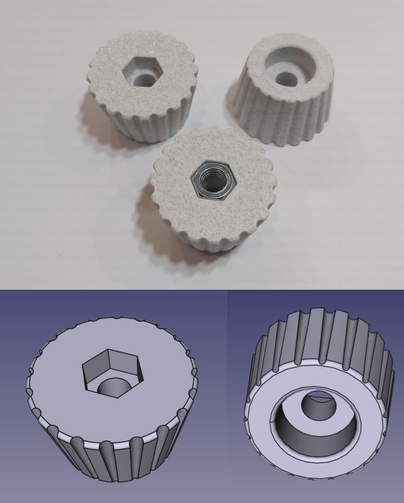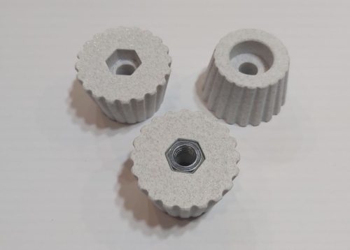 A 40 mm átmérőjű műanyag láb stabil alátámasztást biztosít hangfalakhoz, kisebb bútorokhoz és különféle szerelési projektekhez. Tartós PLA vagy PETG műanyagból készül, így jó ellenállást nyújt mechanikai igénybevételnél. A 25 mm magas kialakítás kényelmes rögzítést tesz lehetővé, az egyik oldali 8 mm-es furatnál pedig egy 13 mm-es hatlapfejű csavar vagy csavaranya számára mélyedés található. A termék pontos méretkialakítása könnyű beépítést biztosít, és többféle színben, köztük márvány hatású kivitelben is elérhető.
