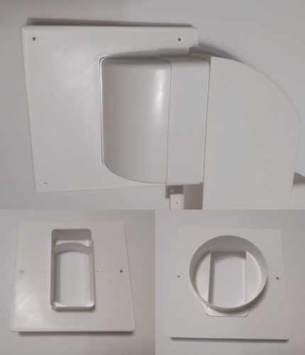 A légtechnikai díszítő takaró elemek ideálisak szellőzőcsövek, átvezetők, légtechnikai idomok vagy falsíkból kiálló csatlakozók esztétikus eltakarásához. A 3D nyomtatott kivitelnek köszönhetően pontosan méretre gyárthatók, így tökéletesen illeszkednek a megadott csőátmérőhöz és falnyíláshoz. A takaró elemek letisztult, modern megjelenést biztosítanak, miközben könnyen szerelhetők és hosszú távon formastabilak maradnak. A PLA vagy PET-G anyag jó mechanikai tulajdonságokkal rendelkezik, így beltéri és enyhe terhelésű kültéri alkalmazásokhoz is alkalmas. Többféle méretben, színben és formában rendelhető.