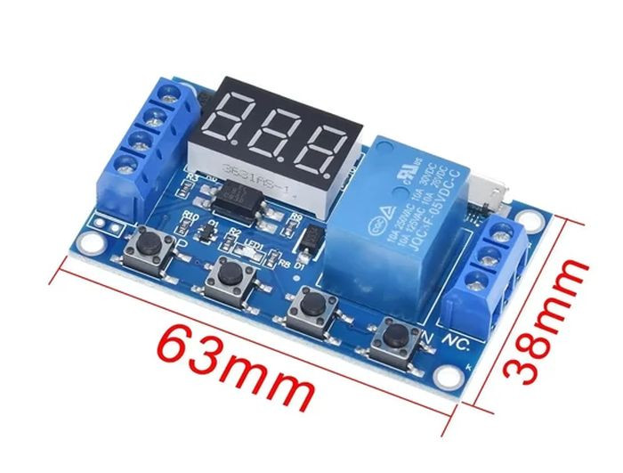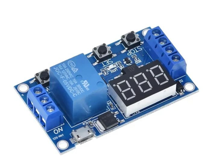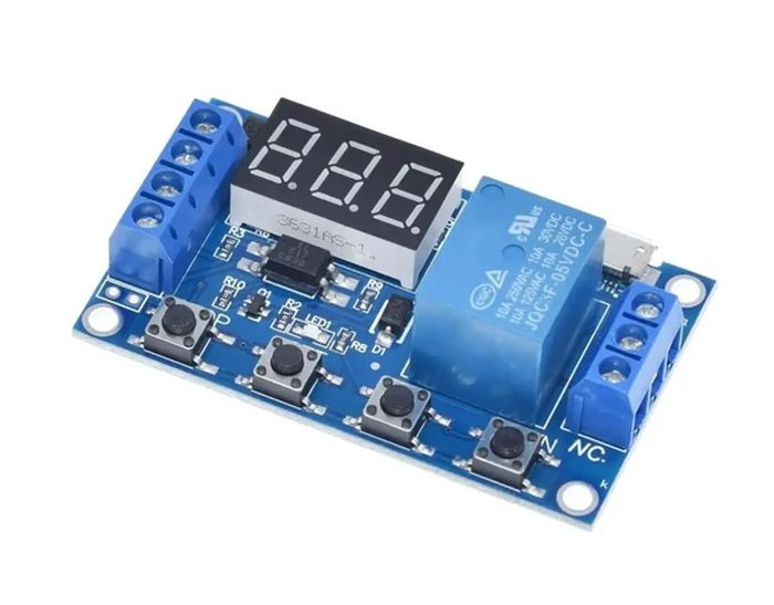 Ez az időzíthető relé modul digitális LED kijelzővel felszerelt, amely megkönnyíti az időzítési paraméterek beállítását és ellenőrzését. A relé vezérlő modul 5–30 V DC működési feszültséggel használható, miközben 1–230 V AC vagy DC terhelést képes kapcsolni. Az állítható időzítés 0,1 másodperctől akár 999 percig terjed, így alkalmas rövid impulzusok és hosszabb ciklusok vezérlésére is. A ciklikus üzemmód lehetővé teszi az ismétlődő kapcsolási feladatokat, a beépített nyomógombok pedig egyszerű és gyors konfigurálást biztosítanak. Megbízható felépítése miatt elektronikai projektekhez és automatizálási feladatokhoz egyaránt jól használható.