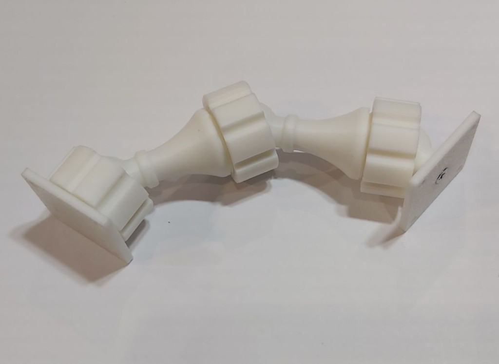 Ez a gömbcsuklós mini falikonzol toldó elem, gömbcsuklós falikonzolhoz, méretpontos 3D nyomtatott alkatrész. A toldó csak egy gömbcsuklós mini falikonzollal együt használható. A gömbcsukló toldó 360°-ban forgatható és minden irányban kb. 30°-ban dönthető, majd egy 28 mm átmérőjű tekerőgombbal rögzíthető. A PLA vagy PETG műanyagból készült konzol könnyű, mégis tartós megoldás elektronikai eszközök, szenzorok vagy kisebb tartók falra szereléséhez. A 3D nyomtatás előnye a pontos illeszkedés és az egyedi igényekhez való alakíthatóság.