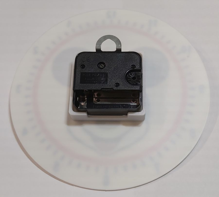 Az óra számlap közepén 10mm átmérőjű lyuk van, hátul egy 3mm vastag hatszög pozicionáló van, az óraszerkezet tartó dobozához, ami levehető a számlap hátuljáról.