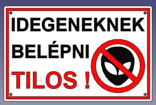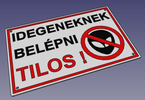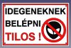 Idegeneknek belépni tilos !, sík felületű tábla.