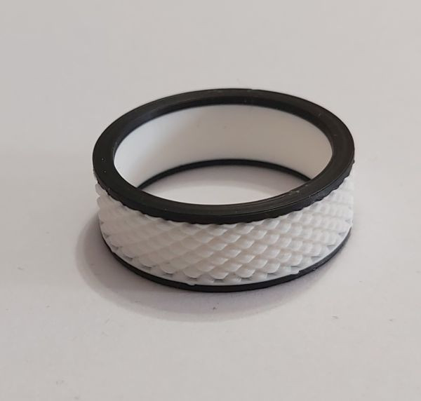 Stílusos műanyag ékszer gyűrű egyedi átmérővel, 3D nyomtatással készítve, pontos méretbeállítással.