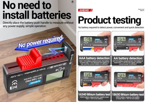 Elem és akkumulátor teszter AA, AAA, 9V, Li-Ion 18650 21700, 1,2-4,8V, 9V KAPHATÓ !!!!!!!!