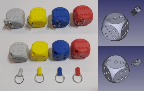 Dobókocka kulcstartóra, közepes méretű.A dobókocka oldalában lévő kulcstartó véget ki lehet csavarozni, így a dobókockával játszani is lehet.Méret: 25,5x25,5mmAnyaga: műanyag PLASzín: többféle színben kérhető