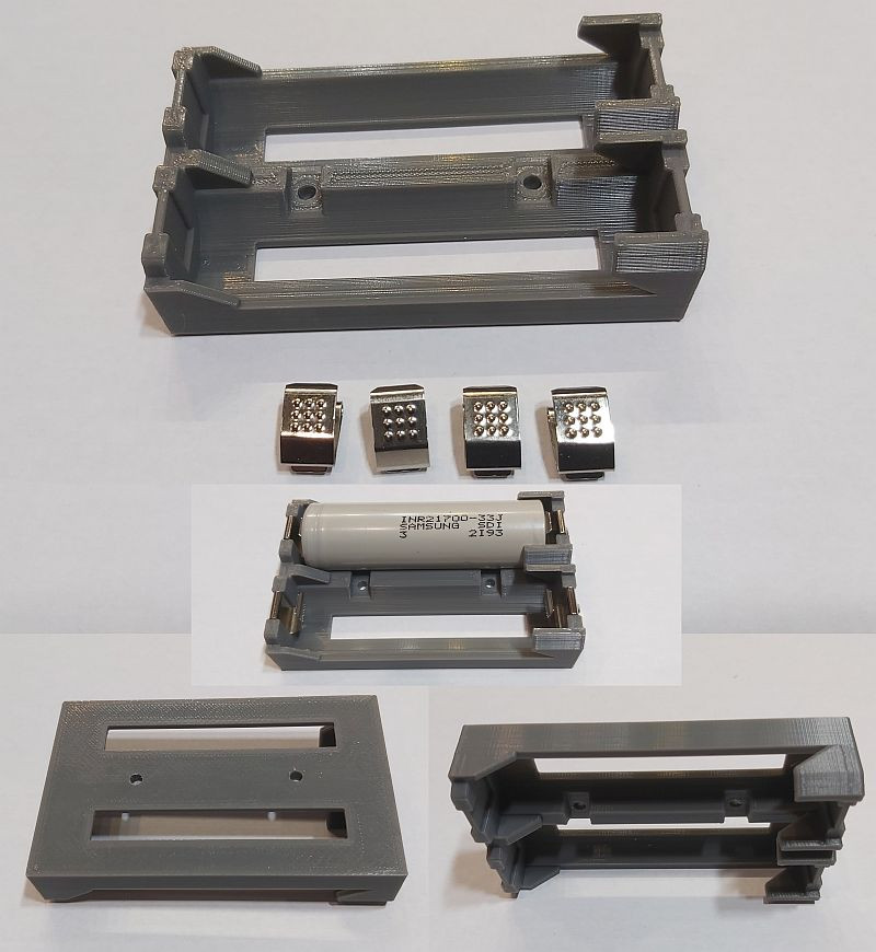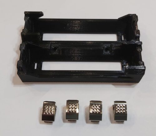 21700 Li-ion 2db lapos érintkezős 70mm-es akkumulátorokhoz, acél rugós érintkezőkkel, akkumulátor tartó, soros elrendezés. KAPHATÓ !!!!!!!