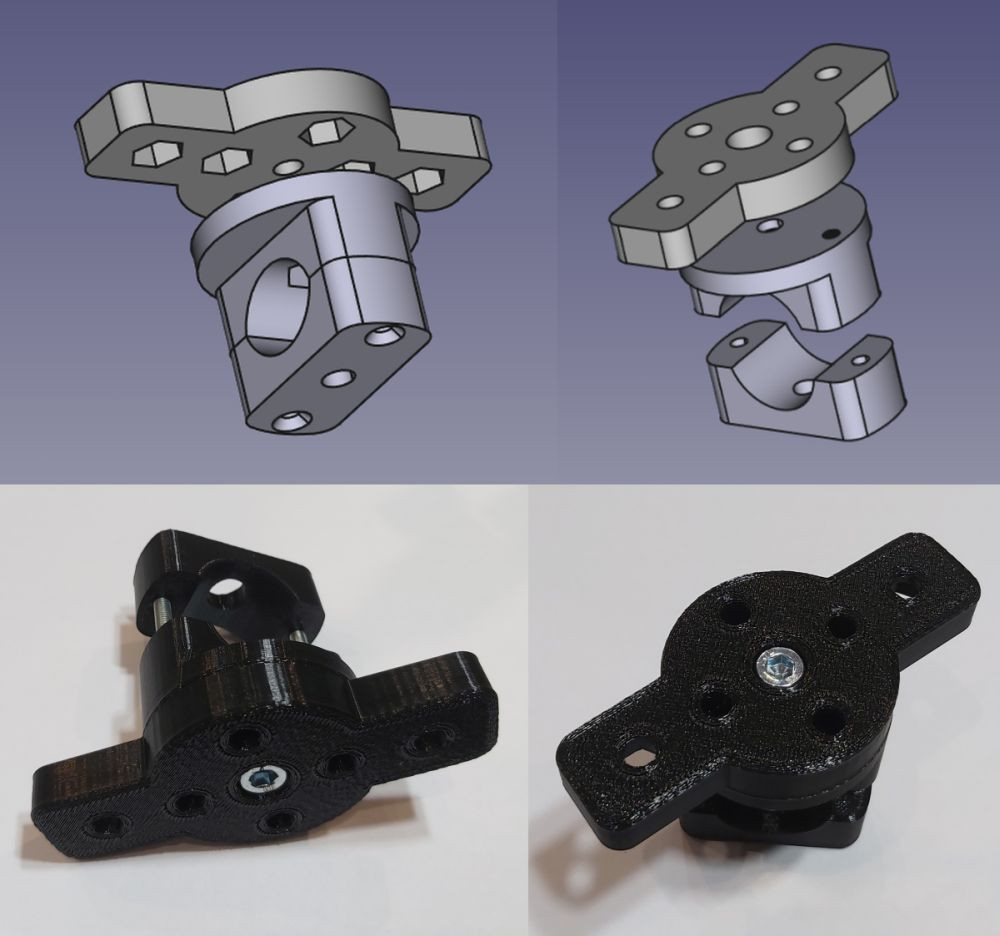 Ez a csőre szerelhető reflektor tartó konzol praktikus megoldást kínál különféle világítótestekés kiegészítők rögzítéséhez. A 360 fokban forgatható konzol lehetővé teszi a pontosiránybeállítást, míg az imbuszcsavarral szabályozható forgatási ellenállás segít a kívánt pozícióstabil megtartásában. A reflektor tartó bilincs kialakítása 19–25 mm közötticsőátmérőkhöz alkalmazkodik, így többféle szerkezeten is használható. PETG műanyagból készült,amely jó mechanikai szilárdságot és hőállóságot biztosít. A 3D nyomtatott kivitel előnye a pontosilleszkedés és a hosszú távú tartósság. A forgó tárcsán kialakított csavarhelyek különféleeszközök rögzítését teszik lehetővé.