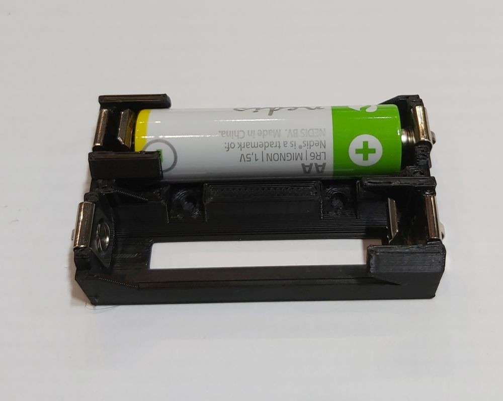 Ez az erősített, kétcellás AA elemtartó megbízható megoldást kínál 1,5 V-os elemek vagy 1,2 V-os akkumulátorok rögzítésére. A tartó stabilan fogja a cellákat, a két oldalán található érintkezők pedig egyszerű forrasztási lehetőséget biztosítanak. A PLA műanyag ház könnyű, mégis tartós felépítést ad, amely jól használható különféle elektronikai projektekben. A kialakítás lehetővé teszi a cellák soros vagy párhuzamos kapcsolását, illetve több elemtartó kombinálását is saját energiacsomagok felépítéséhez.