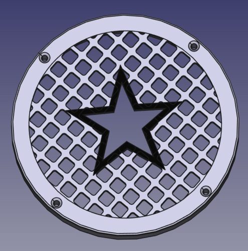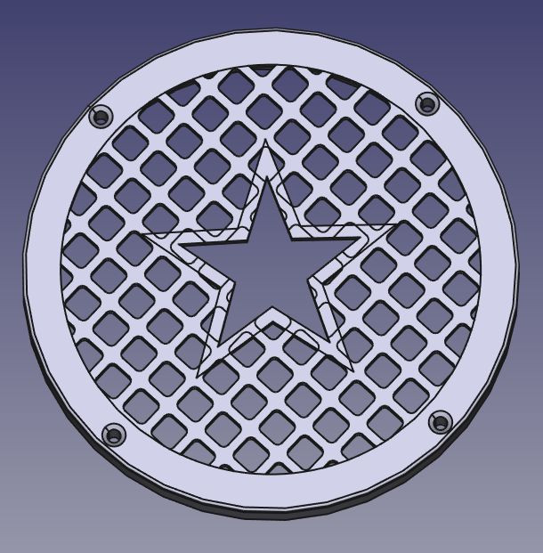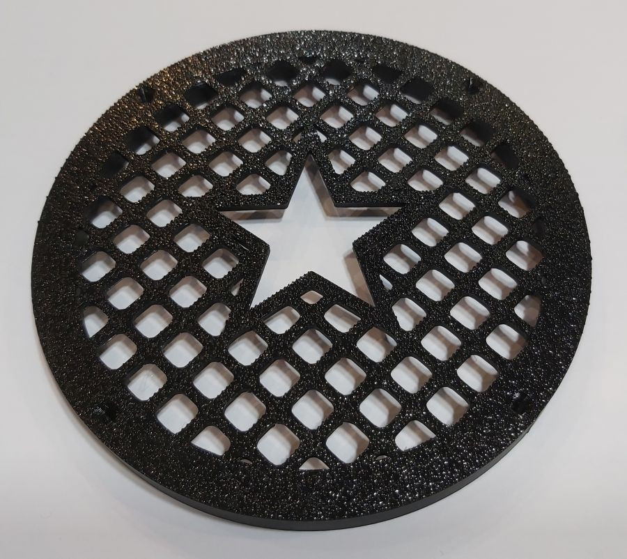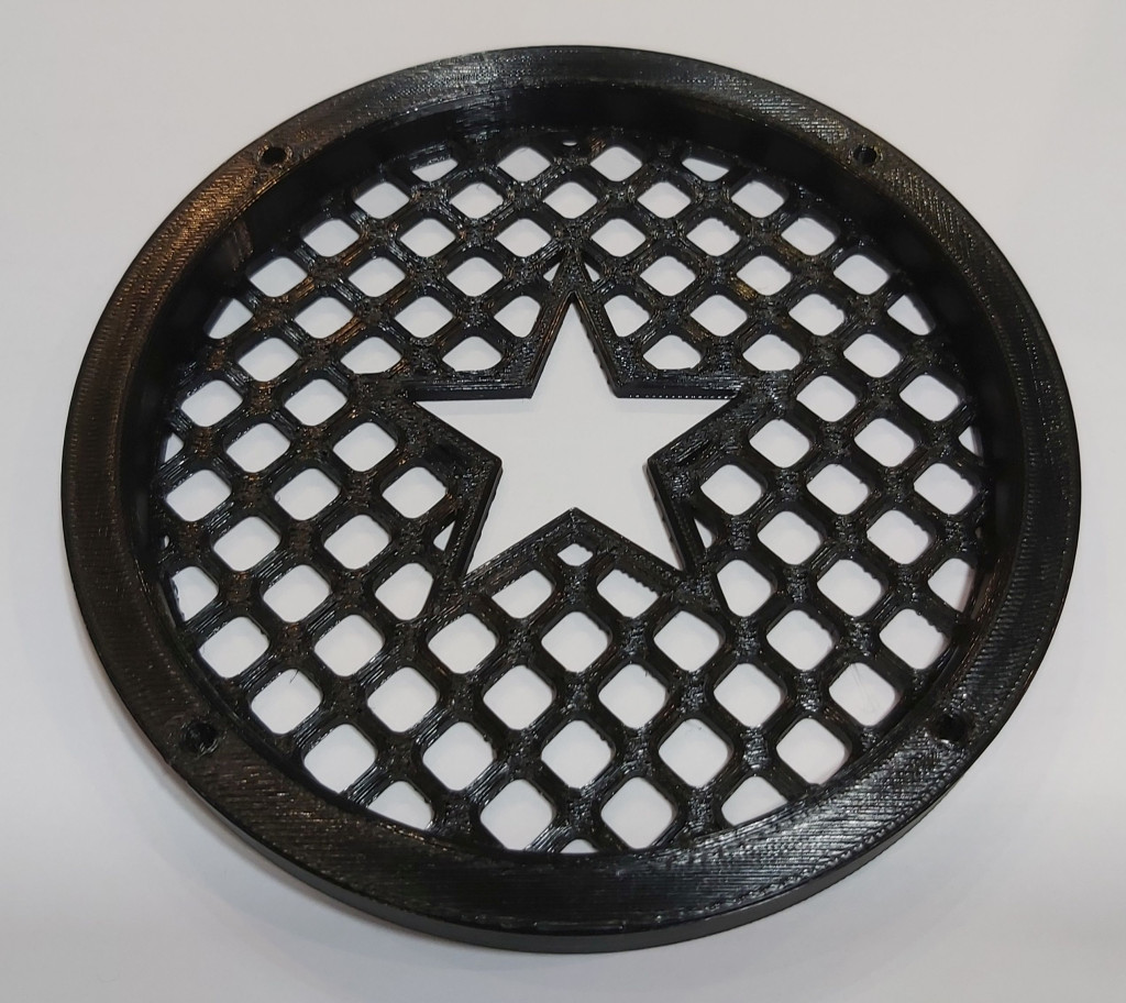 Hangszóró keret rács egyben csillag mintával, amely esztétikusan eltakarja a hangszórót és a rögzítőcsavarokat.