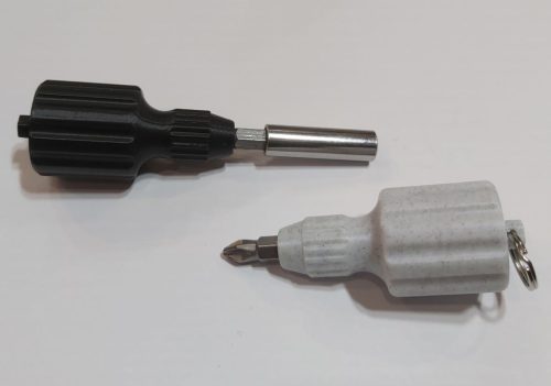 Kulcstartó mini marokcsavarhúzó, tároló rekesszel, 6mm-es normál bitfejekhez. (61x28mm) KAPHATÓ !!!!!
