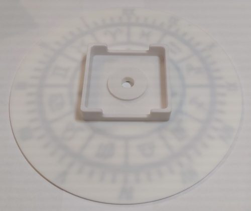 Az óra számlap közepén 10mm átmérőjű lyuk van, hátul egy 3mm vastag hatszög pozicionáló van, az óraszerkezet tartó dobozához, ami levehető a számlap hátuljáról.