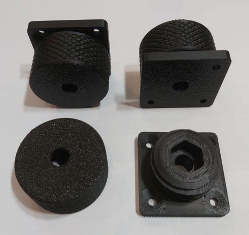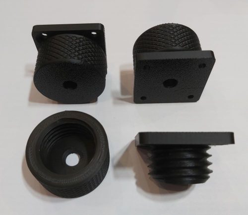 Az állítható műanyag láb praktikus megoldást kínál hangfalak, műszaki eszközök és kisebb bútorok stabil alátámasztásához. A 25–35 mm közötti magasságállítás rugalmas alkalmazást tesz lehetővé, míg a 40 mm-es átmérő megfelelő alátámasztási felületet biztosít. A láb PLA vagy PETG alapanyagból készül, amelyek jó tartósságot és formaállóságot nyújtanak. A négy süllyesztett csavarhely megkönnyíti a rögzítést, a központi furat pedig külön opcióként csavar vagy anya befogadására alkalmas. Letisztult megjelenésének köszönhetően többféle környezetben is használható.