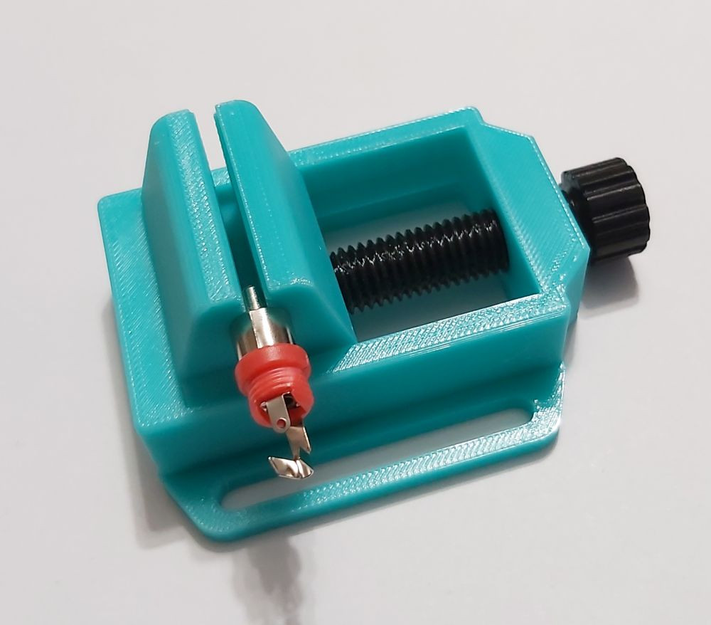Ez a mini nagyobb satu kifejezetten elektronikai munkákhoz tervezett segédeszköz, amely ideális csatlakozók, vezetékek és kisebb alkatrészek rögzítésére forrasztás vagy javítás közben. A satupofák hosszirányú recézése biztos fogást ad, míg az 18x10 mm-es csavaros, recézett forgatógomb pontos és finom szorítást tesz lehetővé. A termék PETG műanyagból készült, amely jó mechanikai szilárdságot és akár 80 °C-ig terjedő hőállóságot biztosít. Magasabb hőmérsékletű, fémes alkatrészek befogásánál javasolt hőszigetelés alkalmazása a pofák és az alkatrész között.