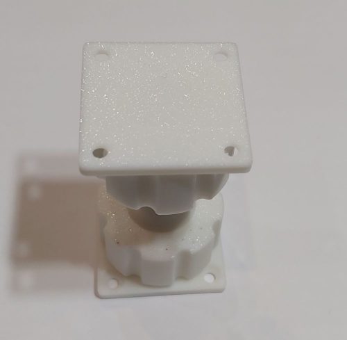 Ez a dupla gömbcsuklós mini falikonzol kifejezetten olyan alkalmazásokhoz készült, ahol fontos az állíthatóság, a megbízható rögzítés és a méretpontos 3D nyomtatott alkatrész. A falikonzol sík felületre csavarozható, 30×30 mm-es rögzítőlappal, amely stabil alapot biztosít. A gömbcsukló 360°-ban forgatható és minden irányban kb. 60°-ban dönthető, majd két darab 28 mm átmérőjű tekerőgombbal rögzíthető. A PLA vagy PETG műanyagból készült konzol könnyű, mégis tartós megoldás elektronikai eszközök, szenzorok vagy kisebb tartók falra szereléséhez. A 3D nyomtatás előnye a pontos illeszkedés és az egyedi igényekhez való alakíthatóság.