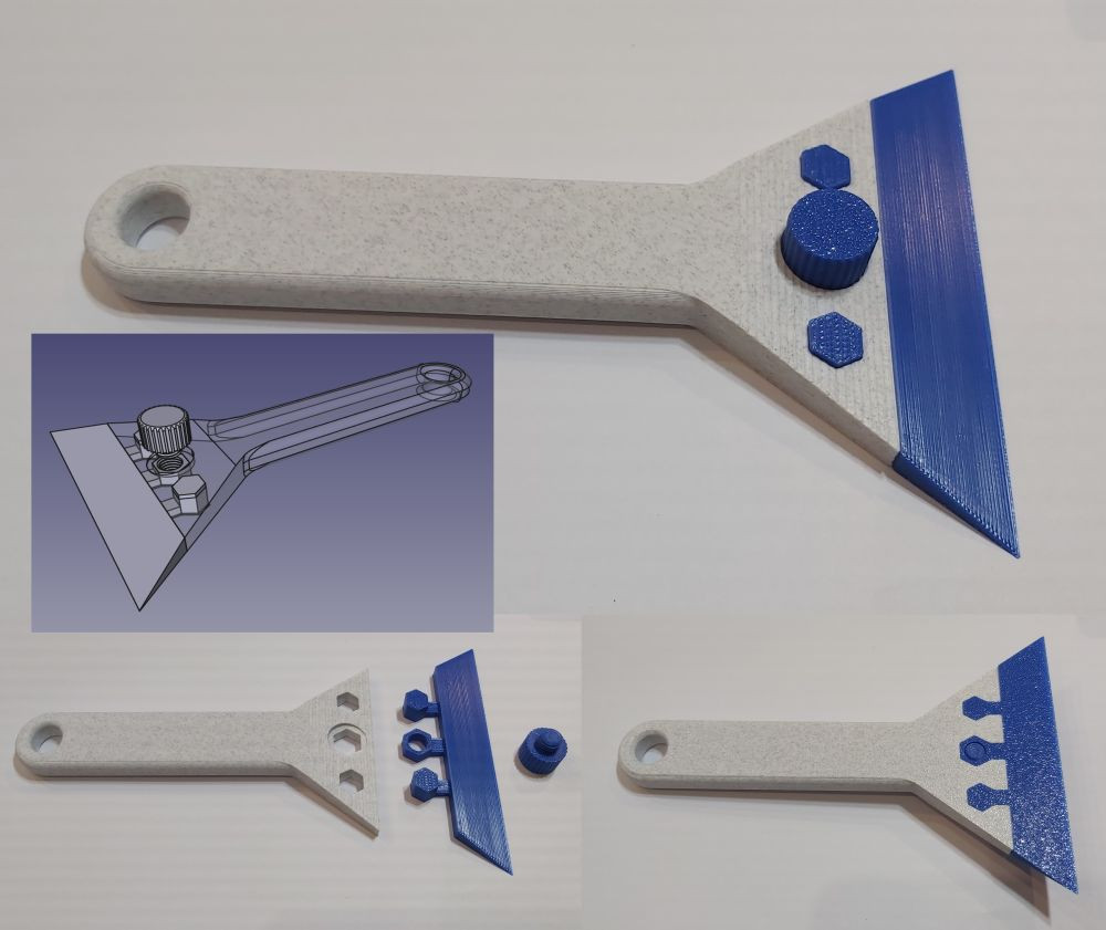 A műanyag spakli cserélhető véggel praktikus eszköz simításhoz, tisztításhoz és kisebb javításokhoz, tartós PLA/PETG anyagból.