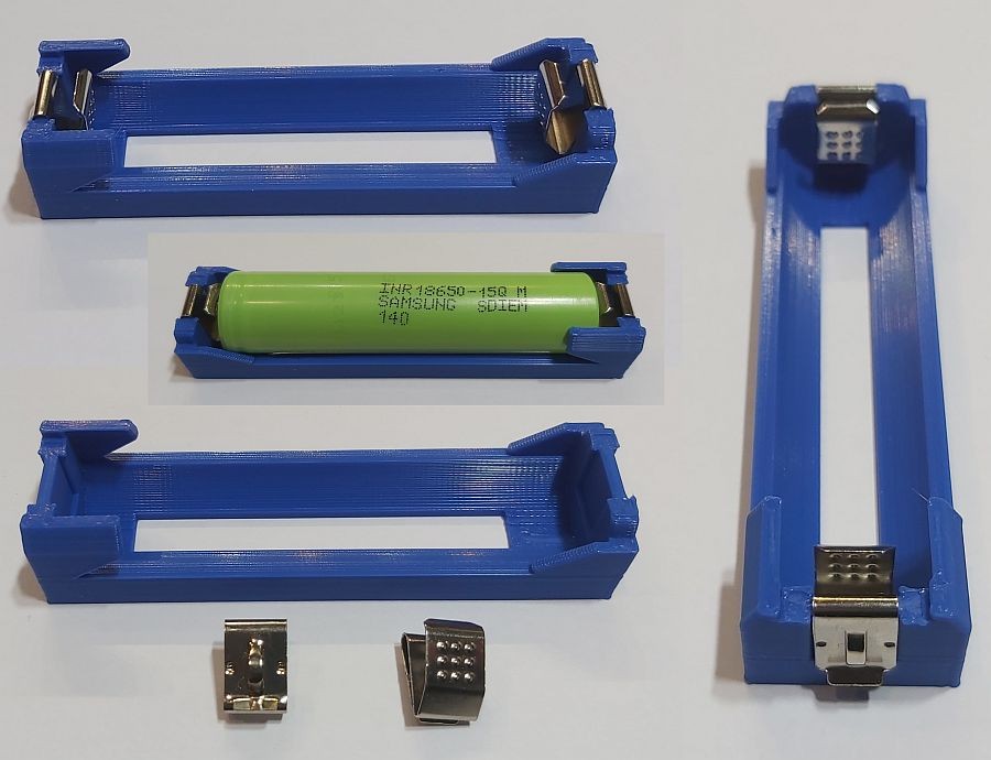 18650 Li-ion 1db lapos érintkezős 65mm-es akkumulátorokhoz, acél rugós érintkezőkkel, akkumulátor tartó. KAPHATÓ !!!