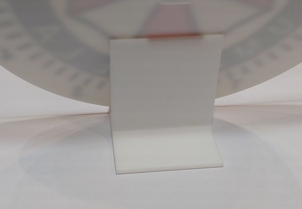 Ez a tartós, letisztult kialakítású óraállvány 175 mm-es faliórák biztonságos és esztétikus elhelyezését teszi lehetővé asztalon vagy polcon. A 3D nyomtatott kialakításnak köszönhetően pontos méretilleszkedést és stabil tartást biztosít, így az óra könnyen a helyiség díszévé válhat. Fehér színben érkezik, de egyedi színválasztás megbeszélés szerint megoldható. Az állvány könnyű, mégis kellően erős ahhoz, hogy mindennapi használat mellett is megbízható tartást nyújtson. Az óraszerkezet és az óralap nem része a csomagnak.