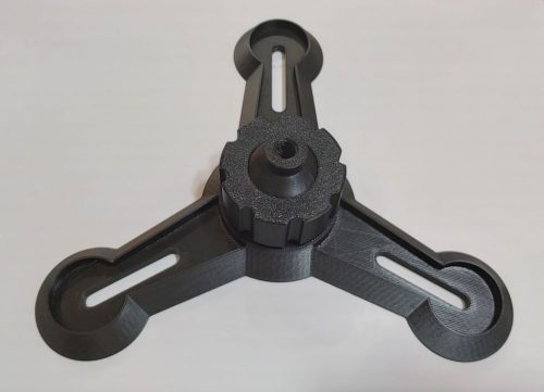 Az M8 menetes gömbcsuklós talp univerzális rögzítőelem, amely lehetővé teszi az eszközök pontos pozicionálását 360 fokos körbeforgatással és legfeljebb 30 fokos döntéssel minden irányban. A 208 mm átmérőjű stabil alap és a 48 mm magas kialakítás megbízható tartást biztosít, míg a 48 mm átmérőjű tekerőgombbal a dőlésszög egyszerűen és biztonságosan rögzíthető.A termék 3D nyomtatással készül PLA vagy PETG műanyagból, ami jó méretpontosságot és megfelelő tartósságot nyújt mindennapi használatra. A cserélhető gömbcsukló kialakítás miatt többféle eszközhöz is alkalmazható, valamint egyedi igények alapján eltérő menettel vagy sík, furatos felső résszel is elkészíthető.