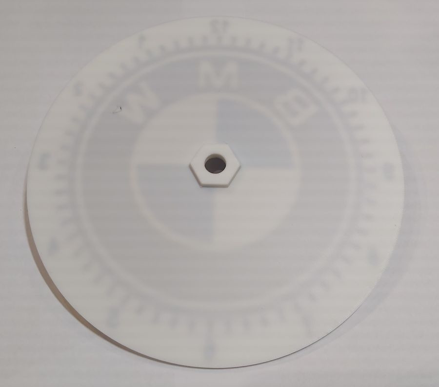 Az óra számlap közepén 10mm átmérőjű lyuk van, hátul egy 3mm vastag hatszög pozicionáló van, az óraszerkezet tartó dobozához, ami levehető a számlap hátuljáról.