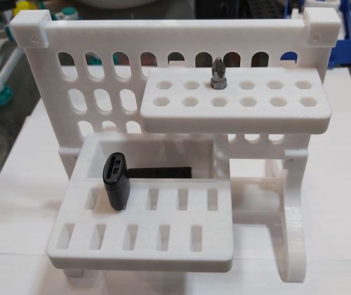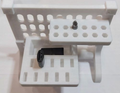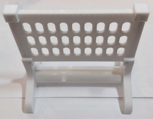 Ez az asztali tartó kifejezetten fali rácsos panelekhez készült, és lehetővé teszi a panelek stabil, önálló elhelyezését íróasztalon, munkapadon vagy munkahelyi környezetben. A tartó elemei egyszerűen egymásba nyomhatók, ami stabil kötést biztosít, ugyanakkor igény esetén csavaros rögzítéssel tovább erősíthető a szerkezet. A termék 3D nyomtatással, PET-G műanyagból készül, amely jó méretpontosságot és tartósságot biztosít a mindennapi használat során. A panel külön vásárolható meg, a tartó önmagában is stabilan megáll, így nem szükséges falra szerelni.